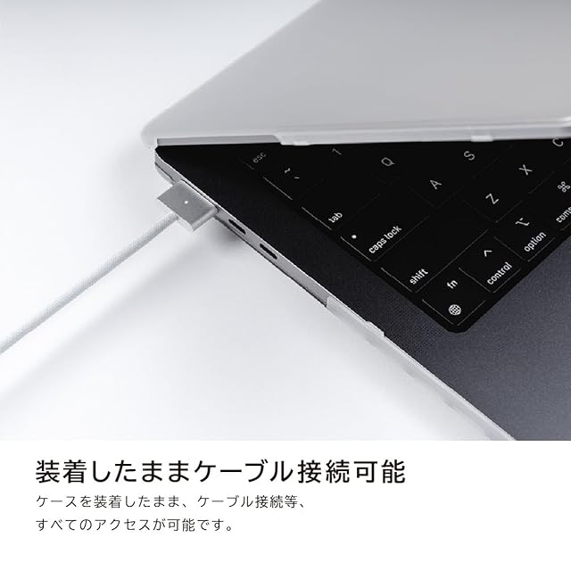 【製品特徴】… ◆ 背面アップルマーク : 透けて見える ◆ キーボードカバー : なし ◆ 底面滑り止めパッド : あり ◆ 排熱ホール : あり ◆ 装着したままケーブル接続 : 可能