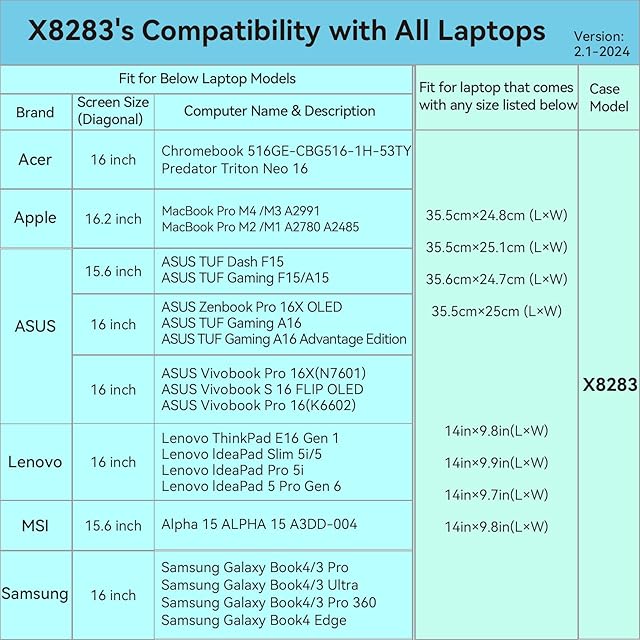 【モデル番号 :X8283】ケースの内寸36.2x25.1x2.4 cm (14.3x9.9x0.9インチ)。