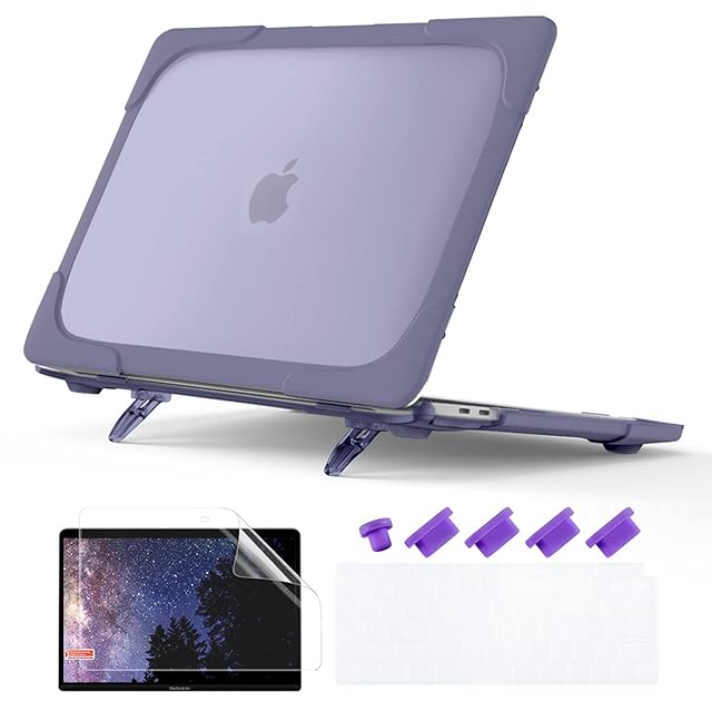 商品名:Batianda MacBook Air 13 インチ ケース 2021 2020 2019 2018 Touch ID搭載 (A2337 M1/A2179/A1932)、耐衝撃 折りたたみスタンド ハードシェル 保護カバー + 日本語キーボードカバー + 液晶保護フィルム, パープル