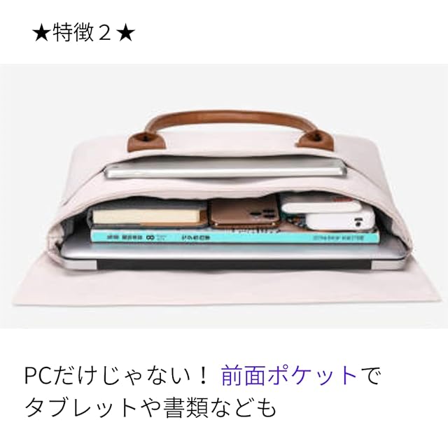 【スリムな見た目なのに、ちゃんとPC専用バッグ】 スリムバッグなのに全方位にしっかりとクッションが入っているので、PCやタブレットを入れても安心。 内側の素材も、PCの表面を傷つけないよう、ベルベット素材が使われています。 内側のポケット2ヶ所も同じく内側はベルベット素材なので、安心してタブレットやスマホを入れて頂けます。 もちろん撥水加工が施されており、急な雨の時も防水性は安心。 【安心のマグネット磁石】 また、インナーポケット部はタブレットが滑って落下しないよう、1ヶ所マグネット磁石が仕掛けられています。 メイン収納部のフラップ蓋部分にも2ヶ所マグネット磁石が入っているので、開け閉めが簡単なのに、きちっと留まり、見た目的にもスッキリ。 まさしく「ザ、PCバッグ!」な見た目が苦手な人にピッタリ! ・メイン収納部 ・前面タブレットポケット ・内部ファスナー小物ポケット 【サイズ】(13インチ)32cm×25㎝、約300g、(14インチ)36cm×29㎝、約350g、(15インチ)38cm×30㎝、約400g ※外側のサイズになります。クッションが効いていますので、中に入れるPCのサイズはそれよりも3cm程小さめの寸法でご確認くださいませ。 ・A4サイズも入るので、勿論PCバッグとしてだけでなく、書類ケース、書類バッグとしてもお使い頂けます。 ・クッションが効いており、軽量ながらもしっかりとした作りです。 【シンプルでどんな服装、シーンにも合う6色】ブラック、ネイビー、ダークグレー、ライトグレー、ベージュ、ホワイト ・外側は上品な素材で、女性の方も、フォーマルな服装の時にもピッタリ。 ・傷もつきにくいので、沢山お使い頂けます。 ・おしゃれな方、大人な方にこそ、お使い頂きたい一品です。