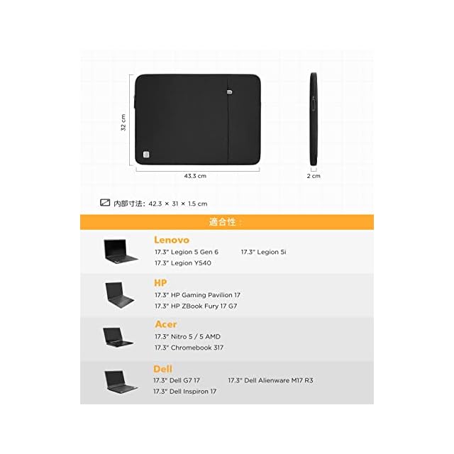 <b>商品説明:</b><br> 軽量で保護力、丈夫な素材を使用し、傷や衝撃からノートPCを保護します。<br> PCバッグ・パソコンバッグとして持ち運べる、ノートPCをキズから保護するインナーリップデザイン。<br> 開閉がスムーズでUltrabookなどのモバイルPCを出し入れしやすいダブルファスナーを採用しています。<br> ノートPCに優しいソフトな材質製インナー、商品画像の画面上の色はお使いのブラウザやパソコン環境により、 実物とは若干異なる場合があります。<br> ご理解の上、ご注文下さいませ。<br> <b>Lenovo:</b><br> 17.3" Lenovo IdeaPad 300<br> 17.3" Thinkpad P70 <br> 17.3" Lenovo IdeaPad 110<br> 17.3" Lenovo Ideapad 700<br> <b>HP:</b><br> 17.3" HP 17<br> 17.3" HP Pavilion 17<br> 17.3" HP ENVY 17<br> 17.3" HP ProBook 470<br> <b>ASUS:</b><br> 17.3" Republic of Gamers GL75<br> 17.3" Republic of Gamers G752<br> 17.3" ASUS X751LD<br> <b>DELL:</b><br> 17.3" DELL Precision 7710<br> <b>Toshiba:</b><br> 17.3" Satellite L70 / P70<br> 17.3" Qosmio X70<br>
