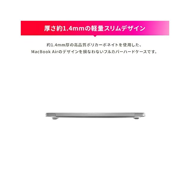 【スリムデザイン】… 約1.4mm厚の高品質ポリカーボネイトを使用した、MacBook Airのデザインを損なわないフルカバーハードケースです。