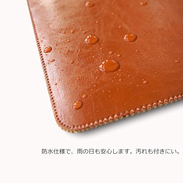 素材は最先端の人工皮革「マイクロファイバーPUレザー」を使用しています。本革より軽くて、防水性・耐久性・メンテナンス性が優れています。細やかなシボ加工を施しており、本革のような高級感が溢れて、柔らかくて、光沢感も手触りも良いです。防水仕様で、雨の日やコーヒーなどをこぼしてしまっても安心します。汚れが付きにくく、付着しても落とすのが簡単です。