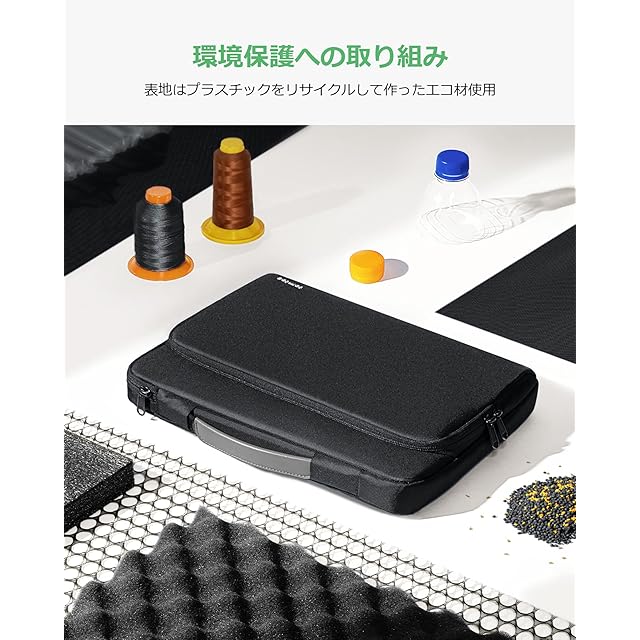 【品質や機能の両立】バッグの寿命が基本的にファスナーや生地で決められます。tomtocケースは耐久性に優れたYKKファスナーを採用し、開閉もよりスムーズで、長持ちです。それに加え、耐摩耗性に優れて手触りの良いPUレザー取っ手、ベットボルトを再生利用した耐久性や撥水性を備えたエコ材表地、柔らかいフランネルの裏地は予想以上の品質を実現。tomtoc製品は全て12ヶ月間安心付きます。
