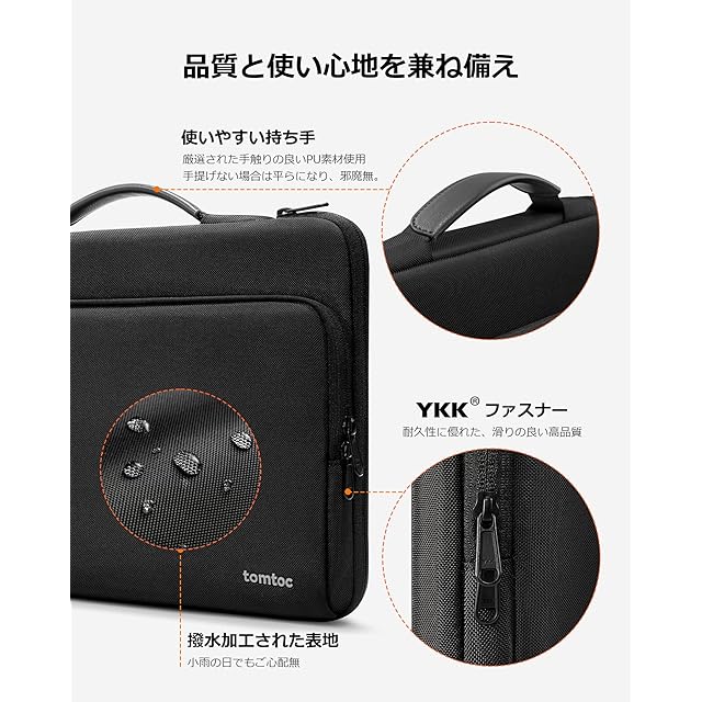 商品名:tomtoc 360°保護 11.6-13.8インチ パソコンケース 13インチ MacBook Air M4-M1 2025-2018 / 13 MacBook Pro M2 M1 2023-2016 / 13 iPad Pro iPad Air / 13.8-12.3インチ Surface 対応 ノートパソコンケース PCバッグ ブリーフケース 撥水加工 耐衝撃 通勤 通学 就活 ブラック