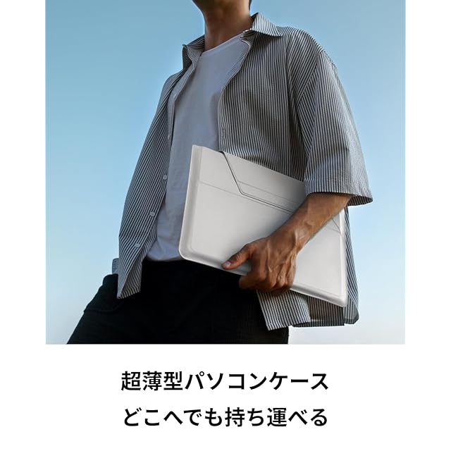 【特製の上質ヴィーガンレザー】従来のレザーに比べ約30%薄く、繊細な質感が特長です。耐久性にも優れ、温かく柔らかな手触りで、快適な持ち運びを実現します。さらに、撥水機能により、突然の雨や飲みこぼしから大切なノートPCを守ります。(本製品は完全防水ではありません。液体に浸したり、開口部から水分が浸入したりする状況には対応しておりませんので、ご注意ください。)