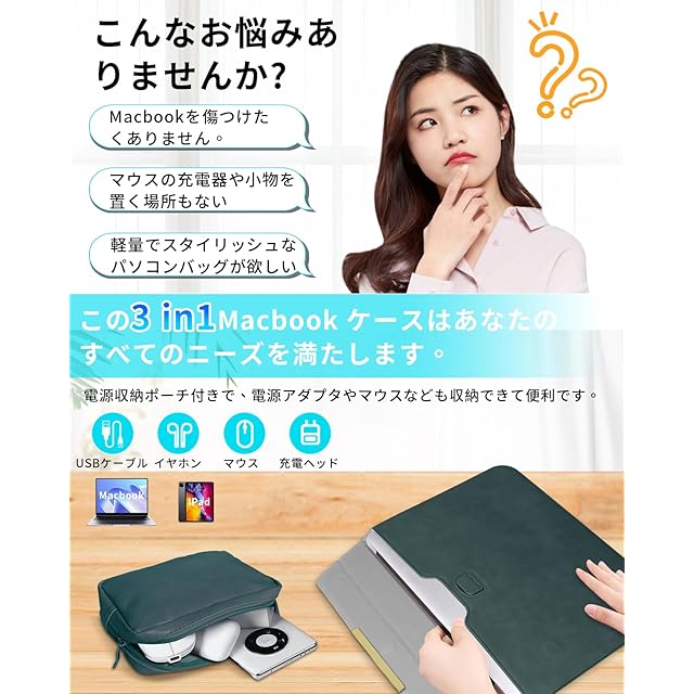 商品名:TOWOOZ 【折り畳み式】MacBook Air/Pro ケース 13-14 インチ 2024年新型M2/M1 薄型 耐衝撃 撥水スリーブケース 防傷 キズ 汚れ 防止 MacBook Air/Pro ケース 13インチ/New Macbook Air ケース 13.6 インチ/Macbook Pro ケース 14 インチ 適応 マウスマット/電源収納ポーチ付き (13~14インチ,緑)