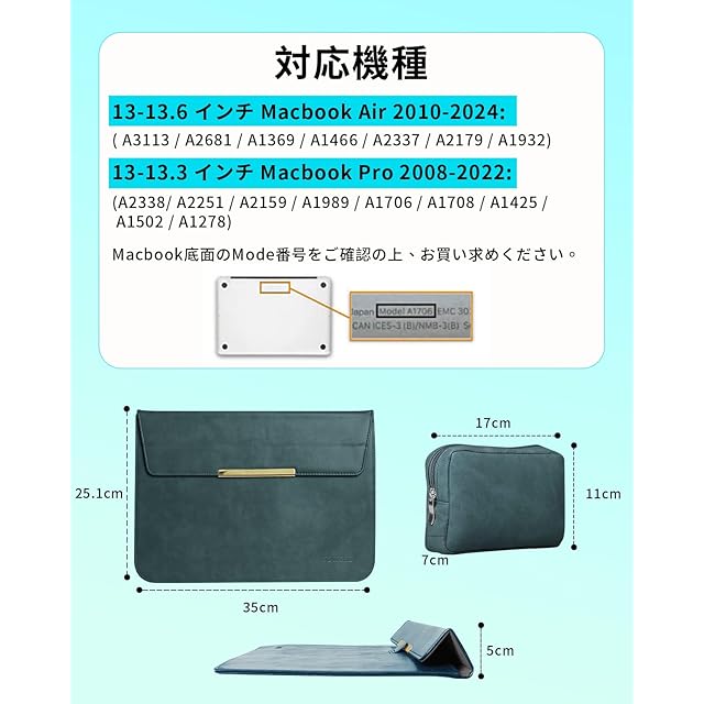 【対応機種】市販された13インチから14インチのパソコンに対応可能。13-13.6 インチ Macbook Air 2010-2024 M1 / M2 /M3 チップス: (A3113 / A2681 / A1369 / A1466 / A2337 / A2179 / A1932); @13-14インチ Macbook Pro 2008-2024 M1/ M2/ M3チップス: (A2159 / A1989 / A1425 / A1502 / A1278 / A1706 / A1708 / A2251 / A2338 / A2442/ A2918 / A2992 / A2779) Macbook底面のMode番号をご確認の上お買い求めください。ご注意:本製品は薄型のため、透明なプラスチックケースとの併用には適しません。