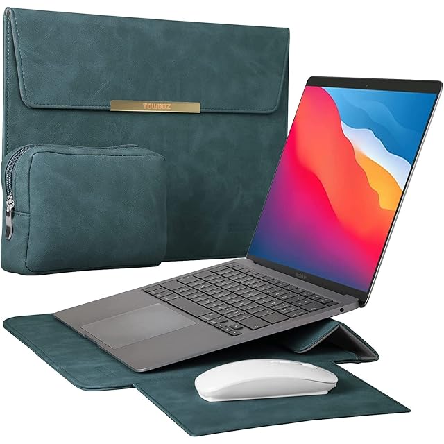 TOWOOZ 【折り畳み式】MacBook Air/Pro ケース 13-14 インチ 2024年新型M2/M1 薄型 耐衝撃 撥水スリーブケース 防傷 キズ 汚れ 防止 MacBook Air/Pro ケース 13インチ/New Macbook Air ケース 13.6 インチ/Macbook Pro ケース 14 インチ 適応 マウスマット/電源収納ポーチ付き (13~14インチ,緑)