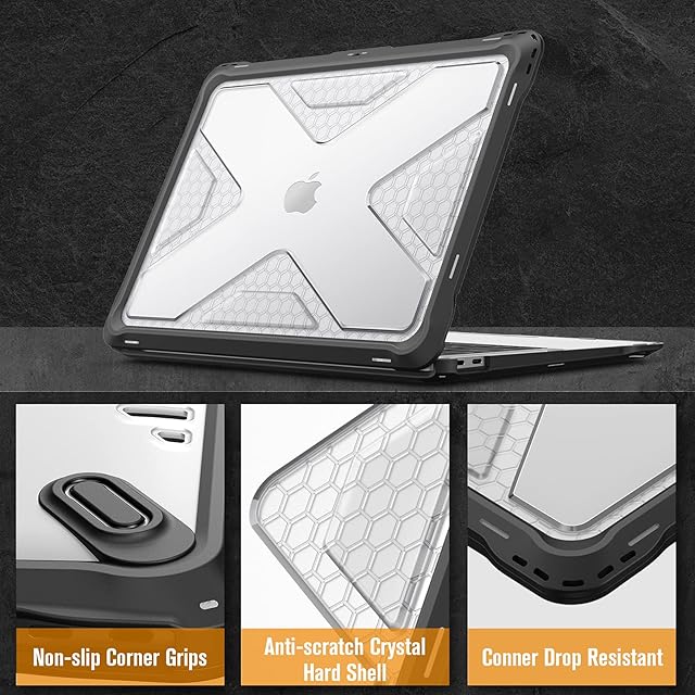 Fintie MacBook Air 13 ケース 保護ケース 2018 2019 2020 2021 発売 13インチ PC TPUバンパー 薄型 軽量 耐衝撃性 傷防止 排熱口設計 おしゃれ (モデル番号A2179 / A1932 / A2337 (M1)) (ブラック)