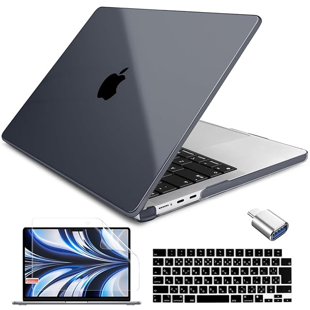 商品名:Batianda新型2023発売15インチMacBook Air(M2チップ)ケース、ハードケース+スクリーンプロテクタ付き+TPUキーボードカバー+OTGアダプタ、クリスタルブラック