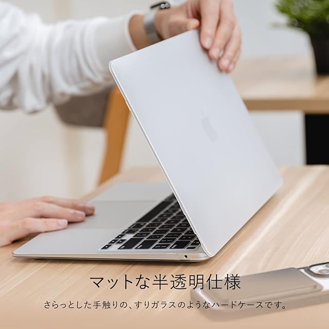 <b>◆ スクラッチ傷に強い</b><BR><BR>ケース表面には傷防止用のコーティングを施しており、ケースをキレイに保つことができます。<BR><BR><BR><b>◆ アンチスリップ加工</b><BR><BR>底面クリアケースには滑り止めパッドが付属しております。<BR><BR><BR><b>◆ マットな半透明仕様</b><BR><BR>さらっとした手触りの、すりガラスのようなハードケースです。<BR><BR><BR><b>◆ 排熱口</b><BR><BR>MacBook本来のデザインを損なわぬよう、排熱口は両サイドに配置しております。<BR><BR><BR><b>◆ 装着したままケーブル接続可能</b><BR><BR>ケースを装着したまま、ケーブル接続等、すべてのアクセスが可能です。