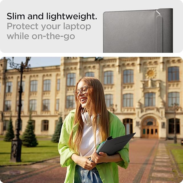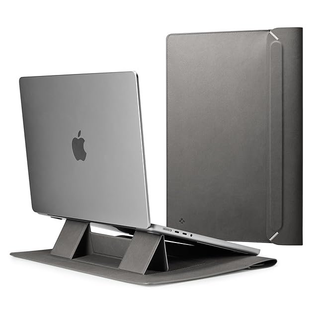 [Spigen] ラップトップ スリーブ バッグ 折りたたみ式スタンド MacBook Pro 対応、内蔵磁気フラップ レザー ラップトップ ケース ラップトップ ポーチ バッグ AFA06421 (グレー)