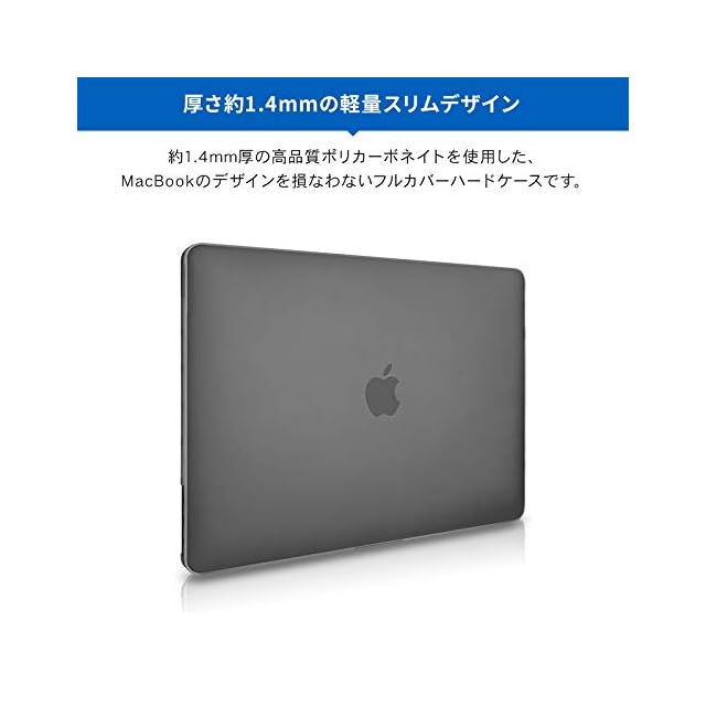 約1.4mm厚の高品質ポリカーボネイトを使用した、MacBookのデザインを損なわないフルカバーハードケースです。