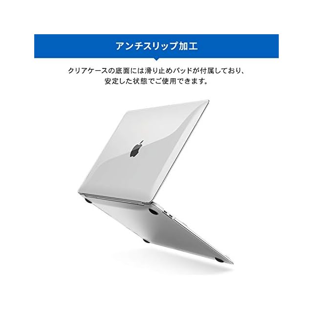 【アンチスリップパッド】… クリアケースの底面には4つの滑り止めパッドが付属しております。滑りやすいデスク等でも安定した状態でマックブックを使用することが出来ます。