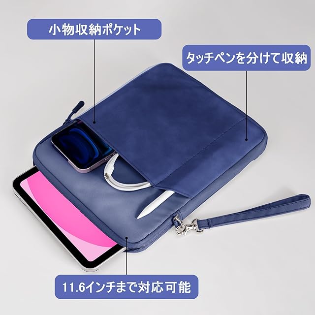 商品名:TopShine タブレット スリーブケース 9-11インチ iPad Air M2 2024 スリーブ 10.9インチ iPad Air 5/4 iPad 10/10.2 iPad 9/10“等対応 タブレットインナーバッグ タブレットケース 小学生 ipad pro ケース ipad バッグ ポーチ iPad 第7/8/9/10世代/iPad mini6 等対応 (ブルー, 12インチ)