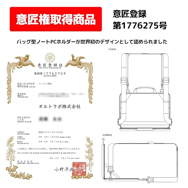 【意匠権取得商品 ケースに入れたまま使えるPCバッグ】ノートPCや大型タブレットを入れたまま使用できるPCバッグ。電車や車、バスなどの移動中にも便利です。手提げ・ショルダーの2WAY仕様。 ・意匠権取得商品 ・意匠登録 第1776275号 ・バッグ型ノートPCホルダーが世界初のデザインとして認められました