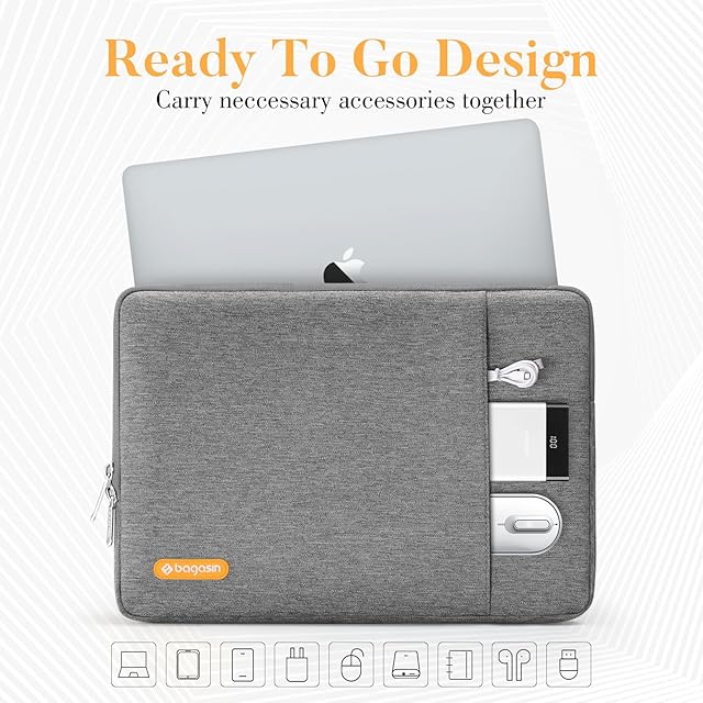 商品名:bagasin 耐衝撃 ラップトップ スリーブバッグ 対応機種 Laptop 12.3インチ ポリエステル 撥水 保護 縦型ケース ポケット付き(グレー)