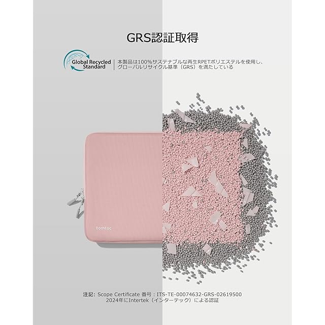 【サステナビリティと品質の融合】 GRS認証(グローバル・リサイクル・スタンダード)を取得したこのノートパソコンケースは、環境に優しい素材と優れたクラフトマンシップを兼ね備えています。撥水加工されたリサイクル生地を使用し、安心のYKKジッパーと柔らかな裏生地が特徴です。何百万本もの廃棄されたプラスチックボトルを再利用して、耐久性と高い機能性を実現したデザインです。tomtoc製品は全て12ヶ月間安心付きます。