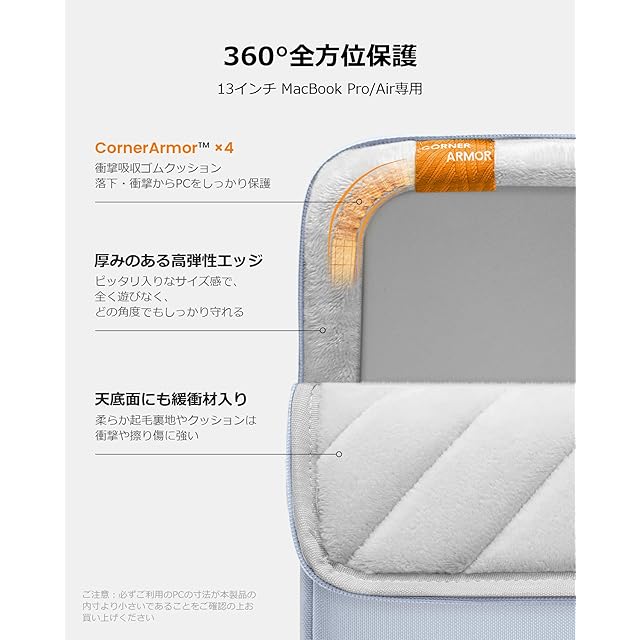 商品名:tomtoc 360°保護 パソコンケース 13インチ MacBook Air M4 2025 M3/M2/M1 2024-2018 / 13インチ MacBook Pro M2/M1 2024-2016 専用 全方位耐衝撃 ノートパソコン ケース 13.3インチ PCケース スリーブ インナーバッグ 軽量 撥水加工 ミスティブルー