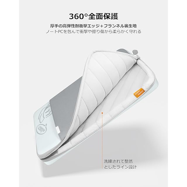 内部は厚くふわふわとしたフランネル起毛生地の採用に加え、tomtocパソコンケースの統一なデザインとして、中はラインが並んでいる模様に設計され、洗練されて整然とした見た目でながら耐衝撃にも役立ちます。ジッパー周りの厚手高弾性エッジにより、ノートPCがジッパーに当てて、傷付くことを防げます。
