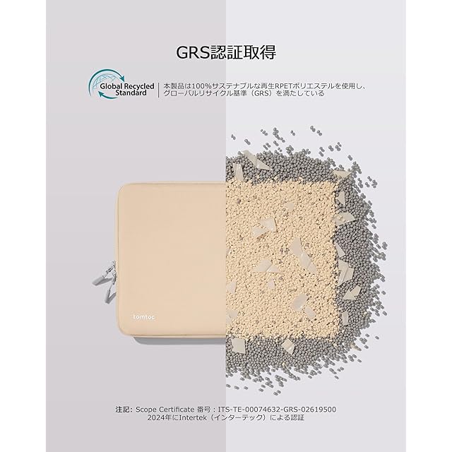 【サステナビリティと品質の融合】 GRS認証(グローバル・リサイクル・スタンダード)を取得したこのノートパソコンケースは、環境に優しい素材と優れたクラフトマンシップを兼ね備えています。撥水加工されたリサイクル生地を使用し、安心のYKKジッパーと柔らかな裏生地が特徴です。何百万本もの廃棄されたプラスチックボトルを再利用して、耐久性と高い機能性を実現したデザインです。tomtoc製品は全て12ヶ月間安心付きます。