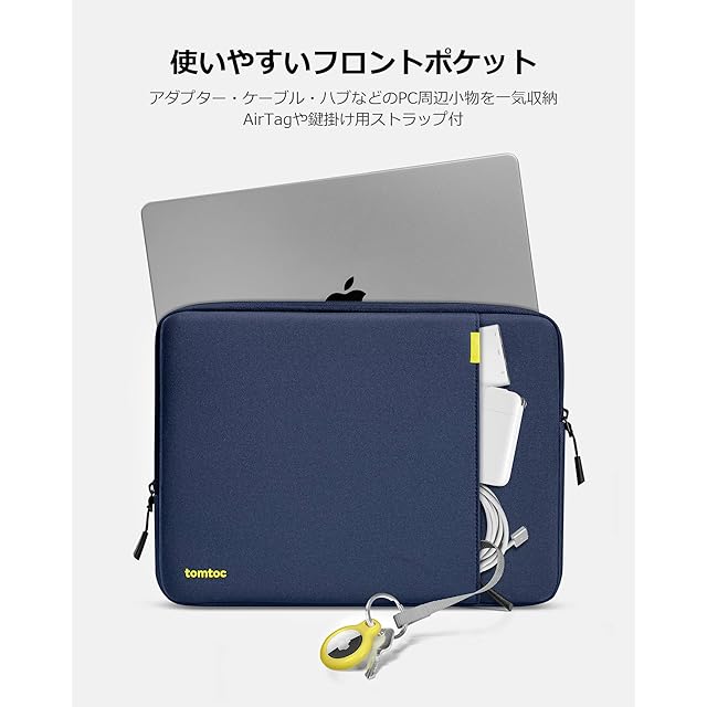 【使いやすいフロントポケット】パソコン以外も持ち回る必需品が必ずあります。ジッパー型フロントポケットはKindle、アダプター、ケーブル、マウス、ハブ、USBメモリ、イヤホンなどのPC周辺小物を一気に収納できます。AirTagや鍵掛け用ストラップ付。この軽量でコンパクトなラップトップ保護ケースは他のショルダーバッグ、バックパックに簡単に収納できます。