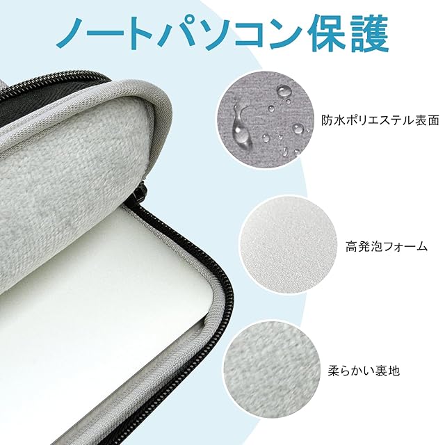 高品質の材料:内側全体は柔らかな手触りの布地で覆われ、中に厚みのあるクッション素材が入っていて大切な機器を全方位から守りはしっかり。防水性、スクラッチ耐性、耐摩耗性ポリエステル表面。水の存在下で浸透するのは簡単ではありません。一方、外側には埃、シワや傷などがつけにくいように工夫されています。