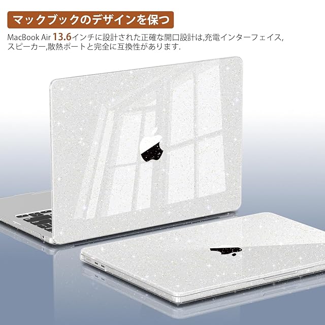 商品名:CISSOOK MacBook Air 13.6 M2 M3 M4 ケース 新型 キラキラ クリア 透明 カバー A2681 A3113 A3240 チップ 対応 13.6 macbook air 2022 2024 2025 カバー 光沢 Bling日本語JIS配列キーボードカバー 付き (5in1)