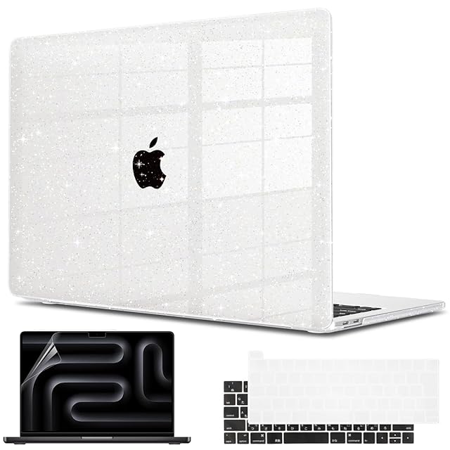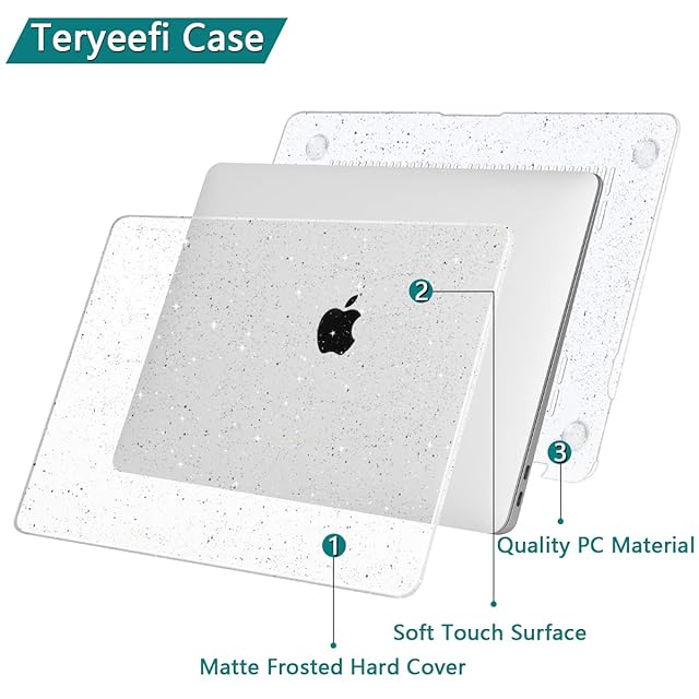 Teryeefi 2022 2020-2016 MacBook Pro 13 ケース M2 M1 A2338 A2251 A2289 A2159 A1989 A1706 対応, 13 インチ MacBook Pro Touch Bar 軽量 排気口 薄型 保護 シェル&JIS日本語キーボードカバー&液晶保護フィルム,キラキラ透明
