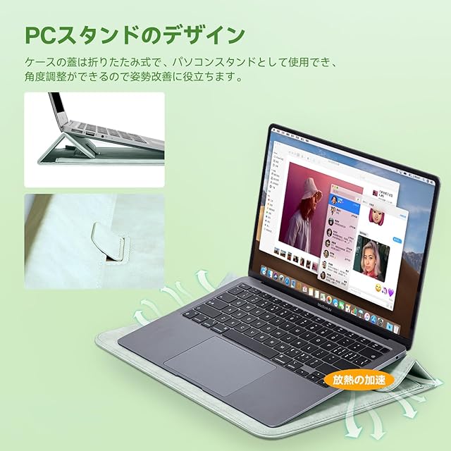 【PCスタンド】ケースの蓋は折り畳み式で、パソコンスタンドとしても使えます、角度が調整でき、姿勢の改善に役立ちます。また、パソコンバッグはマウスパッドとしても使用できるため、実用性がさらに向上しています。