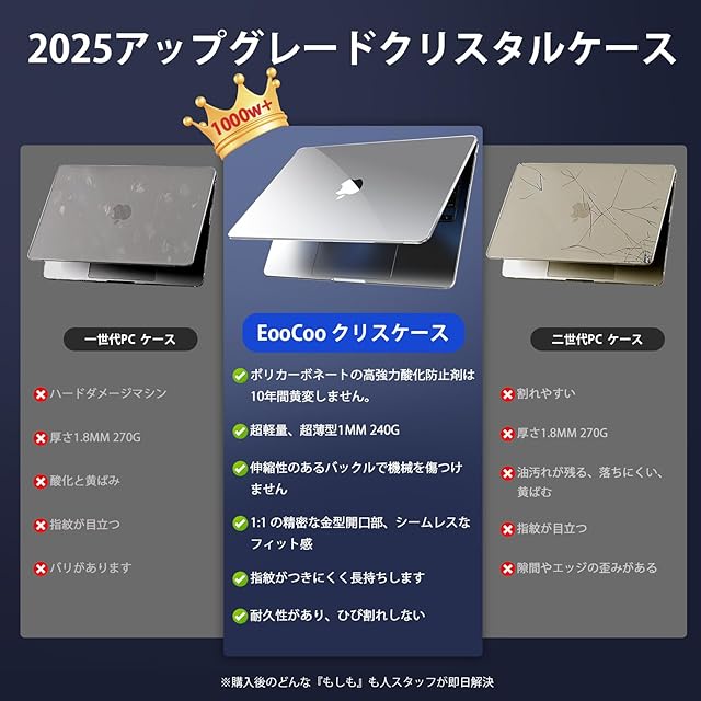 商品名:EooCoo 2025 M4 ケース MacBook Air 13インチ M3 M2 チップ 2024 2022リリース 対応高い透明 傷防止 A3240 A3113 A2681 カバー - クリスタルクリア