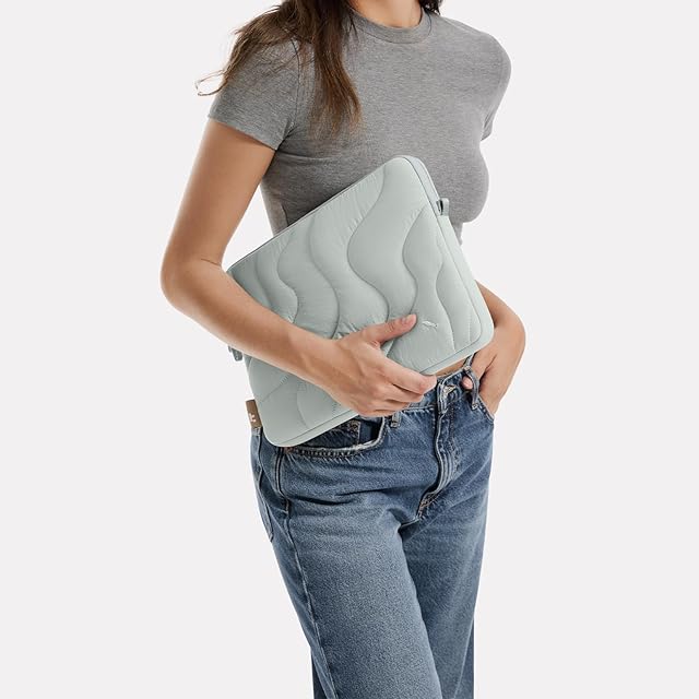 tomtoc 360°保護 ふわふわ パソコンケース 13インチ MacBook Air M4 2025 M3/M2/M1 2024-2018 / 13インチ MacBook Pro M2/M1対応 軽量 キルティング スリーブ iPad Pro M4/Air (M3/M2) / 13インチ Surface Pro ノートPCケース 柔らかい 可愛い バッグ 湖辺