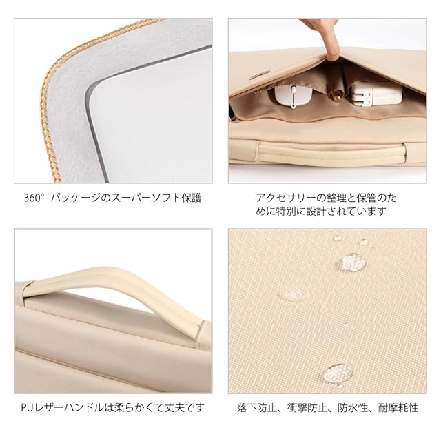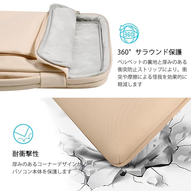 商品名:LANDICI パソコンケース 14 15インチ 360°全方位保護 PCケース耐衝撃ノートパソコンケース,14インチMacBook Pro M3/M2/M1 Pro/Max 2023-2021,15インチMacBook Air M2,Surface Laptop Studio 2/1,Chromebook,富士通, 東芝対応,14-15型pcバッグ 手提付き 撥水加工 軽量通勤,アプリコット