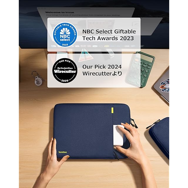 【メディアやお客様からの評判】想像以上の保護力や優れた品質、ピッタリフィットな装着感で、このPCケースは広く高評価されています。Wirecutterより「一番人気のノートパソコンスリーブ ・MacBook Proケース」と褒賞され、さらにNBC Selectより「Select Giftable Tech Awards 2023」を授賞されました。注:Wirecutter :「The New York Times」所属ガジェットレビューメディア。