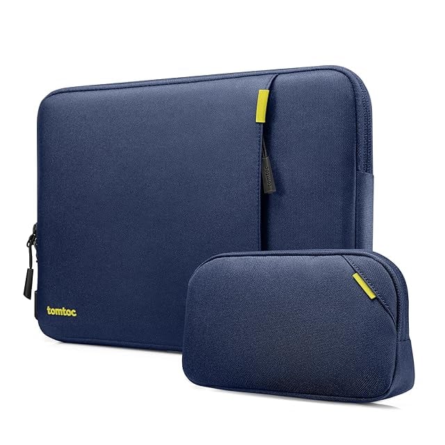 tomtoc 360°耐衝撃 15インチ MacBook Air M4/M3/M2 2025-2023 / Dell XPS 15 Plus対応 保護 スリーブ ノートPCインナーバッグ ガジェットポーチ付属 ネイビー