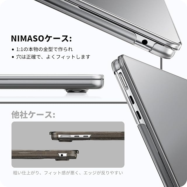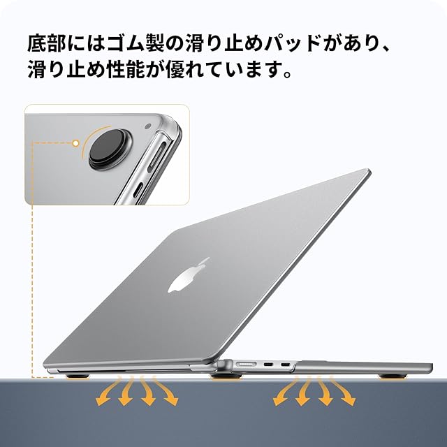 【ぴったりフィット感 正確な設計】本ケースはMacBook Air 13.6インチに合わせて正確に設計しており、端末とぴったりフィットします。簡単にケースが外れることはなく、また、ケース側面にもポートに合わせて設計しておりますので、まったく問題なくポートをご使用いただけます。