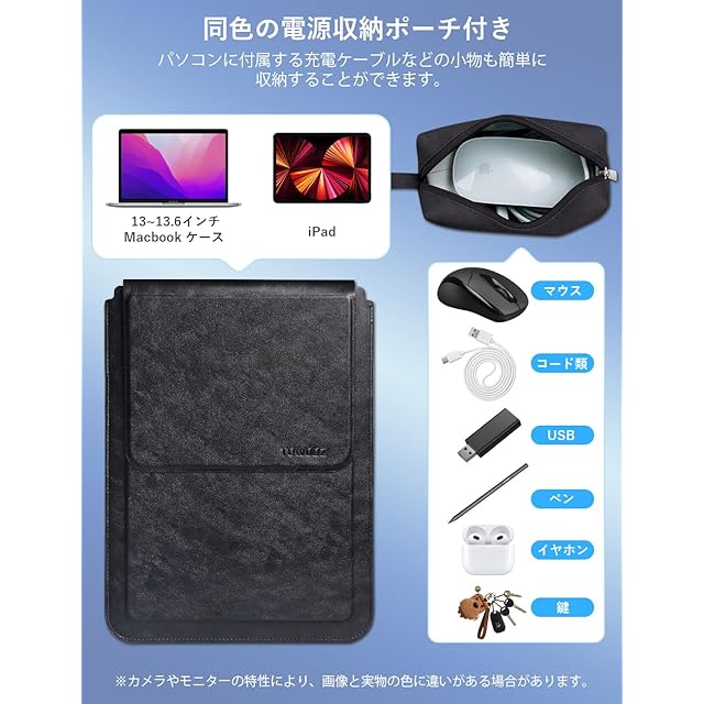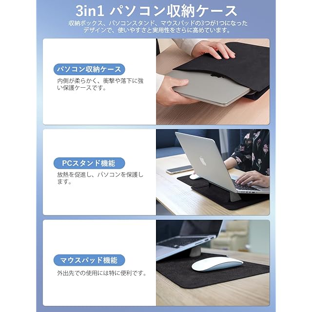 商品名:TOWOOZ 3in1 ノートパソコンスリーブ pcスタンドとマウスパッド付き MacBook Air ケース 13-13.6 インチとMacbook Pro 13~13.3 インチに対応 薄型 合成革パソコンスリーブ ノートPCインナーバッグ 耐衝撃 キズ 防止 撥水加工 全面保護 電源収納ポーチ付き 通勤 通学 出張 ビジネス 男女兼用