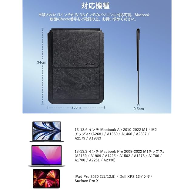 【対応機種】大部分の13-13.6インチノートパソコンに対応します。例えば、@13-13.6 インチ Macbook Air 2010-2022 M1 / M2 チップス: (A2681 / A1369 / A1466 / A2337 / A2179 / A1932); @13-13.3インチ Macbook Pro 2008-2022 M1チップス: (A2159 / A1989 / A1425 / A1502 / A1278 / A1706 / A1708 / A2251 / A2338 ). Macbook底面のMode番号をご確認の上お買い求めください。