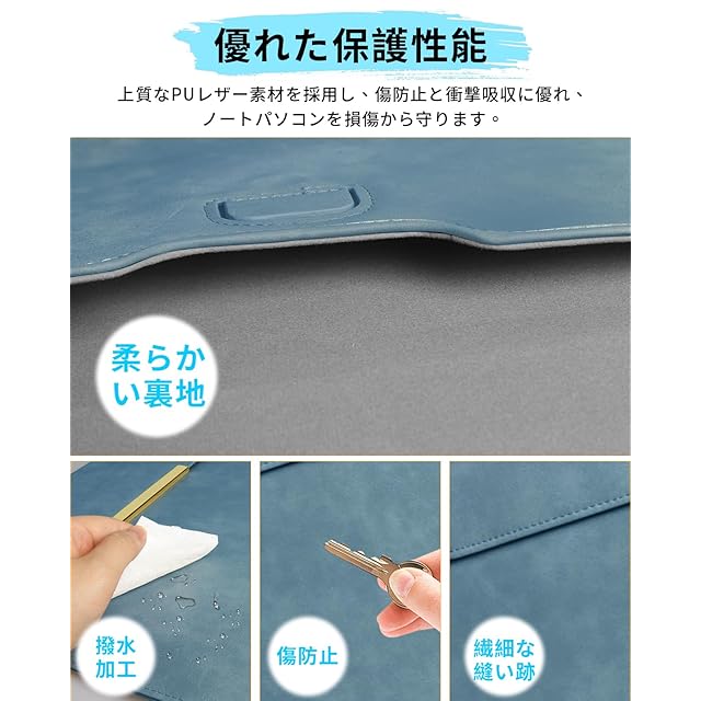 【磁石固定】保護ケースの蓋とケースにマグネットを各2枚内蔵され折り、ファスナーやボタンと違い、使用に便利です、簡単に開きたり、閉じたりできます。PCの出し入れはとても便利です。洗練されたシンプルなデザインで使用するシーンを選びません。しっかりとした厚みのあるPUレザーで使用時の手触りや見た目にも高級感があります。