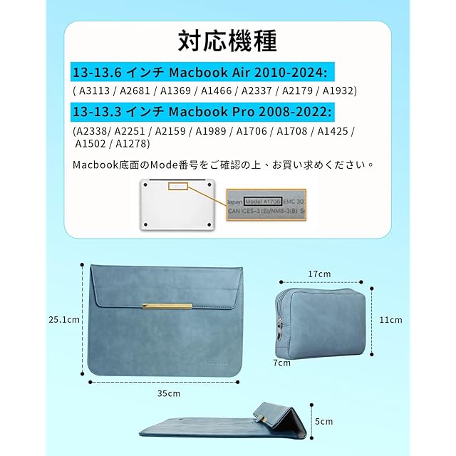 【対応機種】市販された13インチから14インチのパソコンに対応可能。13-13.6 インチ Macbook Air 2010-2024 M1 / M2 /M3 チップス: (A3113 / A2681 / A1369 / A1466 / A2337 / A2179 / A1932); @13-14インチ Macbook Pro 2008-2024 M1/ M2/ M3チップス: (A2159 / A1989 / A1425 / A1502 / A1278 / A1706 / A1708 / A2251 / A2338 / A2442/ A2918 / A2992 / A2779) Macbook底面のMode番号をご確認の上お買い求めください。ご注意:本製品は薄型のため、透明なプラスチックケースとの併用には適しません。