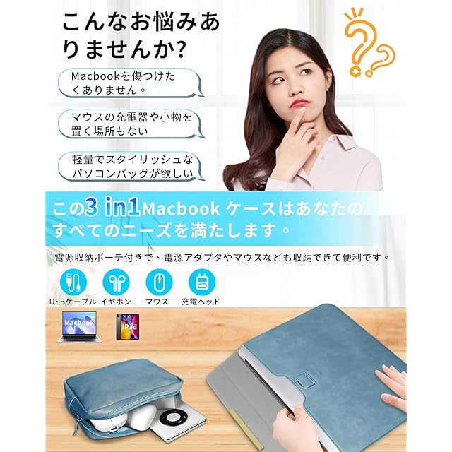 商品名:TOWOOZ 【折り畳み式】MacBook Air/Pro ケース 13-14 インチ 2024年新型M2/M1 薄型 耐衝撃 撥水スリーブケース 防傷 キズ 汚れ 防止 MacBook Air/Pro ケース 13インチ/New Macbook Air ケース 13.6 インチ/Macbook Pro ケース 14 インチ 適応 マウスマット/電源収納ポーチ付き(13〜14インチ,ブルー)