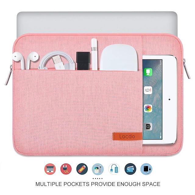Lacdo Chromebook ケース 11インチ ラップトップスリーブ 11インチ エイサー HP レノボ デル サムスン ASUS Chromebook Spin 3 11、13インチ Surface Pro 9 8 X、11.6インチ MacBook Air 防水コンピュータバッグ、桃