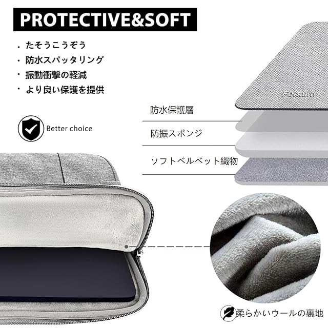 商品名:[Ferkurn] パソコンケース PCケース 手提付き 360°保護 ノートパソコンケース pcバッグ 撥水加工タブレット ケース MacBook Air/Pro/iPad/Surface/Chromebook シリーズ/Asus/Lenovo/レノボ/Dell/レッツノート/HP/NEC/Dynabook/Acer/富士通 対応 パソコンカバー 13 13.3 13.5インチ ライトグレー