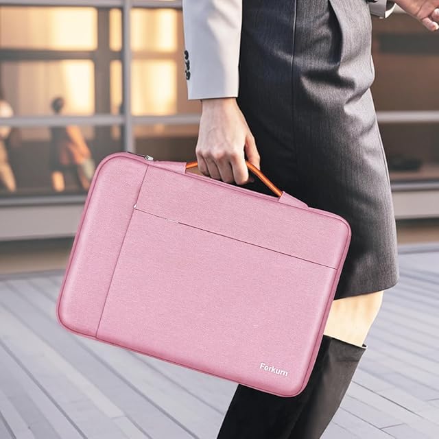 Ferkurn パソコンケース PCケース 手提付き 360°保護 ノートパソコンケース pcバッグ 撥水加工タブレット ケース MacBook Air/Pro/iPad/Surface/Chromebook シリーズ/Asus/Lenovo/レノボ/Dell/レッツノート/HP/NEC/Dynabook/Acer/富士通 対応 パソコンカバー 15 15.6 16インチ ピンク