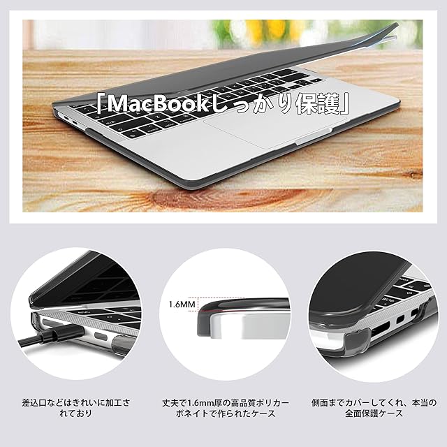 【全面保護&高品質素材】超強靭な高品質のPC素材を使用して、軽いし、耐久性に優れています。高耐衝撃性を備えつつも、黄ばみにくく、汚れにくい素材です。MacBook本体をしっかり傷や汚れから守ります。