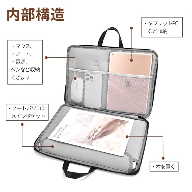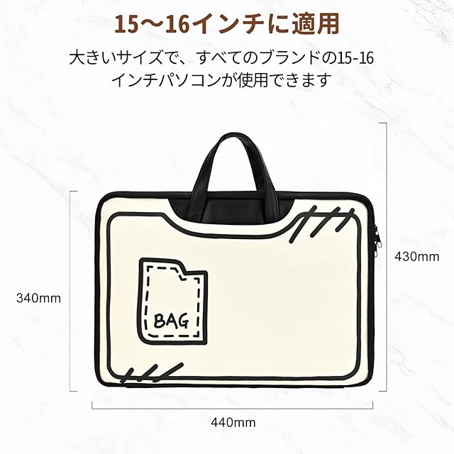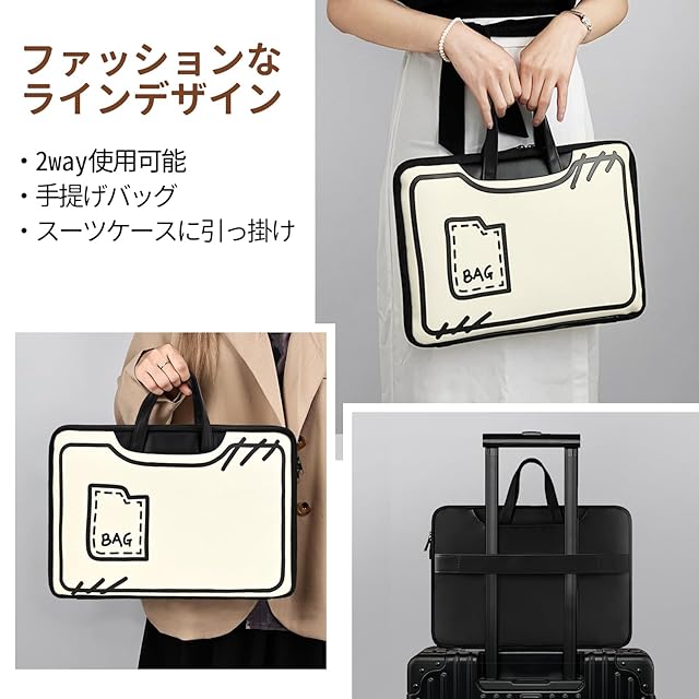 【軽量と便利】:取っ手が付いて持ち運びに便利なノートpcバッグ。背面に固定用の帯を付き、キャリーケースにも取り付け可能なので、旅行や出張にも便利です。また、シンプルなラインのデザインがおしゃれで可愛く、大人から子供まで使えます。