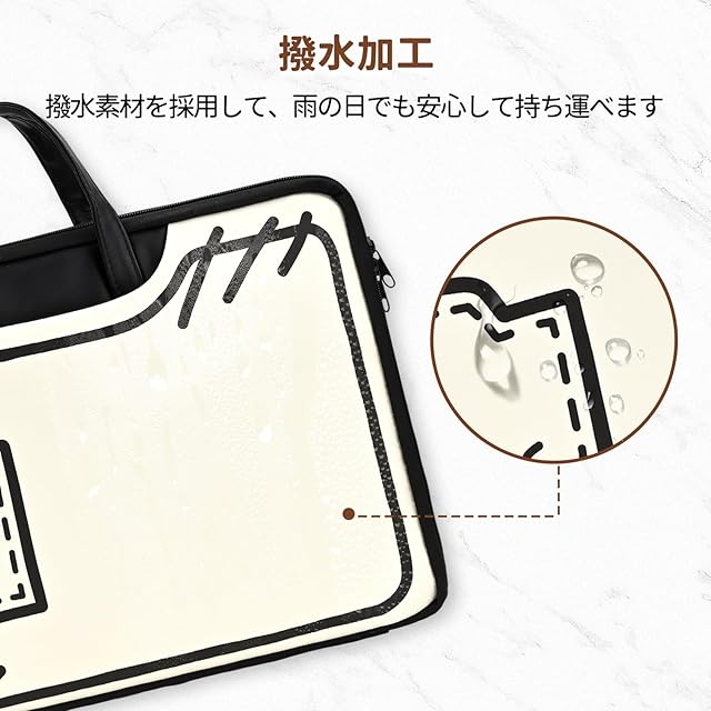 【360°全方位保護】:パソコンケース内部の厚くてふわふわしたクッションは衝撃吸収効果に優れています。 ジッパーの周りに保護パッドも付いており、傷を防止し、大切なノートパソコンを保護します。 耐水性のある生地は見た目以上に耐水性があります。 多少の汚れがついても拭くだけで簡単に取れます。 雨や雪からの水が浸入せず、大切なノートパソコンや周辺機器を濡れから守ります。