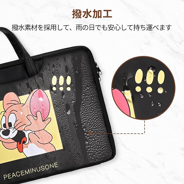 【軽量と便利】:取っ手が付いて持ち運びに便利なノートpcバッグ。背面に固定用の帯を付き、キャリーケースにも取り付け可能なので、旅行や出張にも便利です。また、かわいいジェリーのデザインがおしゃれで可愛く、大人から子供まで使えます。