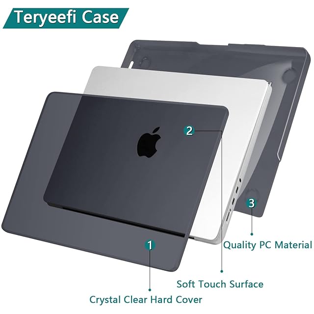 商品名:Teryeefi MacBook Pro 14 インチ ケース M4 M3 M2 M1 2025-2021 発売対応,(モデル:A2779/A2442 M2 M1 Pro/M1 Max), 軽量 排気口 保護カバー&JIS日本語キーボードカバー&液晶保護フィルム&ダストプラグ,クリスタルブラック